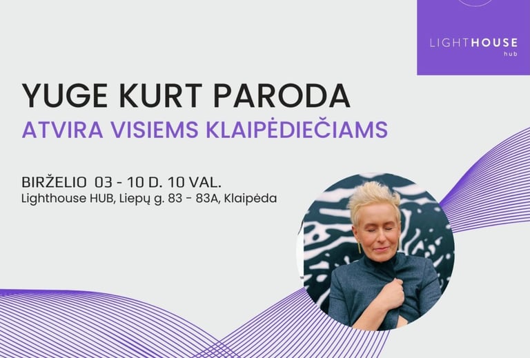 "Lighthouse Hub 5-ųjų augimo metų proga savo bendruomenei ir visiems besidomintiems menu parengė dar vieną dovaną – Yuge Kurt parodą." / Lighthouse Hub
